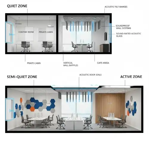 Office soundproofing solutions focus on blocking sound transmission between spaces and controlling noise movement across the workplace.