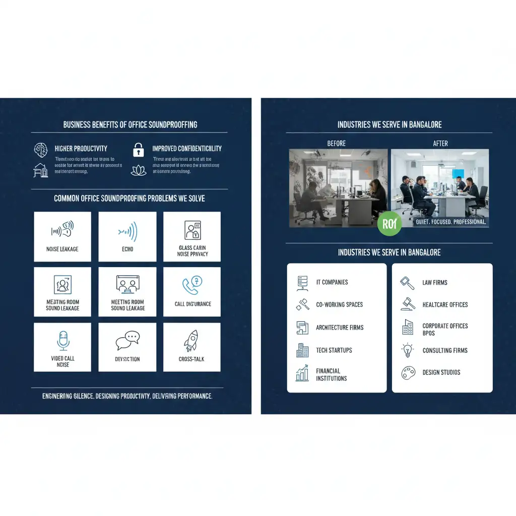 In today’s corporate environment, noise is no longer just a discomfort — it is a business risk. Poor acoustics affect productivity, confidentiality, employee wellbeing, client experience, and brand perception. As offices in Bangalore continue to adopt open layouts, glass cabins, and collaborative designs, the demand for professional office soundproofing solutions is no longer optional — it is essential.